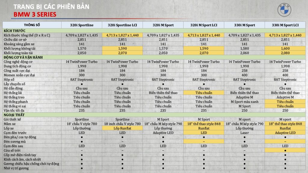 | BMW 320i M Sport 2025 | 1.701.000.000 đ |